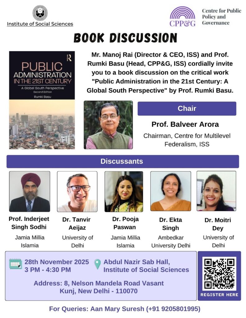 Join us for a book discussion on “Public Administration in the 21st Century: A Global South Perspective,” organized by the Institute of Social Sciences (ISS) and the Centre for Public Policy and Governance (CPP&G).